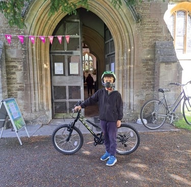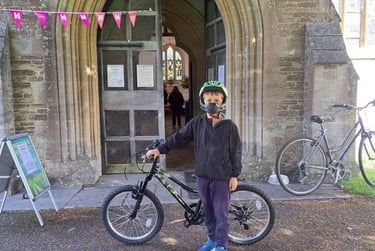 7 year old Leo has been raising money for Wiltshire Historic Churches by cycling with his grandmother between Heytesbury and Wylye, visiting 7 churches as part of Ride and Stride